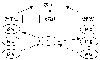在下圖所示的拉動(dòng)式生產(chǎn)裝配線中,涉及到注塑件、五金沖壓、線路板等各種零件,整個(gè)流程經(jīng)過(guò)多臺(tái)設(shè)備,而中間的設(shè)備是大部分零件都須經(jīng)過(guò)的中心環(huán)節(jié)。因此,這臺(tái)設(shè)備正是JIT生產(chǎn)制造系統(tǒng)所要控制的瓶頸設(shè)備。