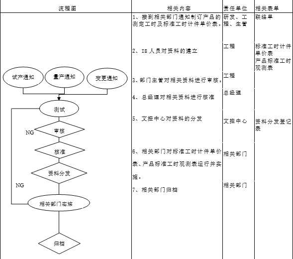 5.1當新產品試產或小批量量產.不在生產線完成.工程專案負責人需通知IE人員,運用標準工時的測量方法,作出產品的預估工時.作為最初成本考量的依據