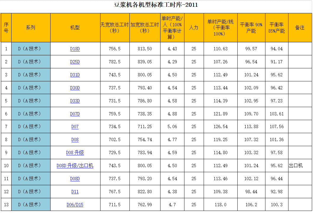 1、建立豆?jié){機(jī)制程操作工時(shí)基礎(chǔ)數(shù)據(jù)庫(kù),為工序調(diào)整、工序平衡提供理論依據(jù);